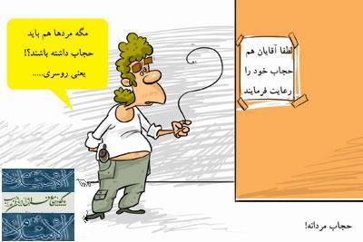 بیحجابی و بدحجابی در پوشش و رفتار مردان نیز نمایان است، اما با برجسته کردن بیحجابی و بدحجابی زنان، این موضوع مهم نادیده انگاشته میشود. حضور بیشتر مردان در عرصههای مختلف اجتماعی و سیاسی به جهتگیریهای گاه افراطی در پوشش زنان منجر شده و در این راستا تغییرات پوششی مردان و از بین رفتن حدود شرعی آنان به حاشیه رانده شده است. در نتیجه گرایش به جنس مخالف در سطح اول از دیدن و جاذبههای فیزیکی ناشی میشود. پوشش نامناسب مردان نیز به افزایش بیحیایی و غفلت در زنان منجر میشود و حرکت چرخهای این جریان، به زدودن مرزهای اسلامی و انسانی جامعه میانجامد و در نتیجه پیامدهای بسیاری را به همراه خواهد داشت. از سوی دیگر این نگاه افراطی به رعایت حجاب تنها از سوی زن، به گسترش اندیشه نادرست سست بودن اراده مردان در غلبه بر نفس و عامل گناه بودن زن که بر خلاف موازین اسلامی است، دامن میزند. پس برای بهبود شرایط عمومی حجاب در جامعه باید به پوشش و رفتار هر دو جنس به طور عادلانه توجه و اهتمام شود.