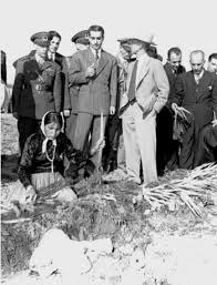 او پس از قرار گرفتن در جایگاه خود در حالی که خبرنگاران خارجی از وضعیت رقت بار کشاورزان این روستا عکس میگرفتند گفت: «... من خودم ده سال مأمور اجرای اصلاحات ارضی بودم ...»[10] این سخنان در حالی گفته میشد که او خود بزرگترین مالک ایران بود که توانسته بود املاکش را تحت عنوان بنیاد پهلوی محافظت کند. او سپس به سینه خود و وزیر کشاورزی مدال اصلاحات ارضی زد و خود را منجی و مأمور اصلاحات ارضی دانست.[11]