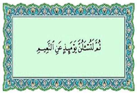 [3]. «سأل أبو حنيفة أبا عبد الله (ع) عن هذه الآية فقال له ما النعيم عندك يا نعمان قال القوت من الطعام و الماء البارد فقال لئن أوقفك الله يوم القيامة بين يديه حتى يسألك عن كل أكلة أكلتها و شربة شربتها ليطولن وقوفك بين يديه قال فما النعيم جعلت فداك قال نحن أهل البيت النعيم الذي أنعم الله بنا على العباد و بنا ائتلفوا بعد أن كانوا مختلفين و بنا ألف الله بين قلوبهم و جعلهم إخوانا بعد أن كانوا أعداء و بنا هداهم الله للإسلام و هي النعمة التي لا تنقطع و الله سائلهم عن حق النعيم الذي أنعم الله به عليهم و هو النبي ص و عترته» طبرسى، فضل بن حسن، مجمع البيان فى تفسير القرآن، ناشر: انتشارات ناصر خسرو، تهران، 1372 ش، نوبت چاپ: سوم، تحقيق: محمد جواد بلاغى، ج10، ص814.