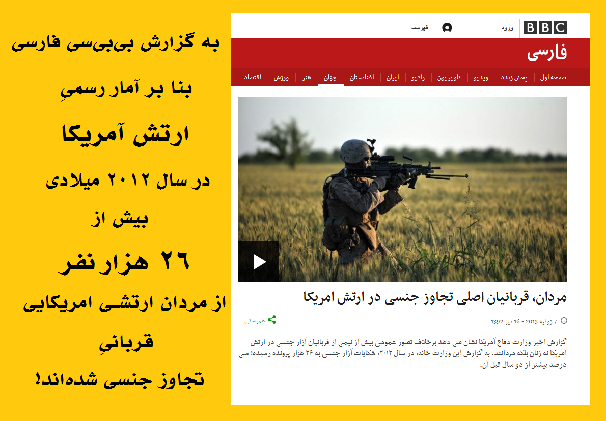 آیا لیبرالیسم غربی میتواند جایگزینی برای اسلام باشد؟! لیبرالیسم غربی در منجلابی که برای خود ساخته دست و پا میزند... 26 هزار تجاوز جنسی به مردانِ ارتشی امریکا در سال 2012، و همین تعداد تجاوز جنسی به زنانِ ارتشی امریکایی در همان سال!