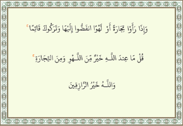 مهاجرین و انصار بهدنبال خرید و فروش رفتند و فقرایشان دنبال لهو و لعب؛ سوره جمعه هم جزء اولین سورههای نازل شده در مدینه نیست، یعنی صحابه چندین سال خدمت پیامبر اکرم بودند ولی باز هم در وسط کلام رسول خدا، ایشان را رها میکنند و سراغ خرید و فروش یا سرگرمی میروند.