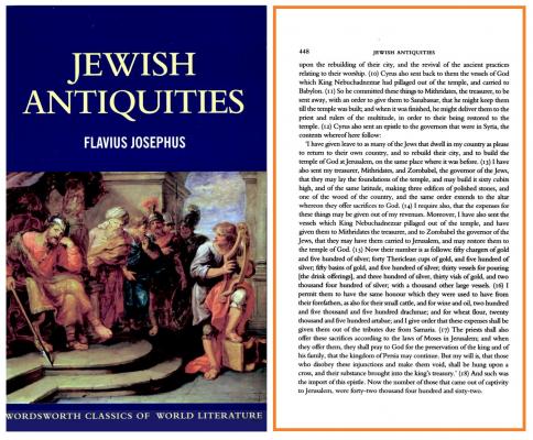 [1]. بنگرید به: Flavius Josephus, Jewish Antiquities, translated by William whiston,Wordsworth classics of world literature, 2006, p 448.
