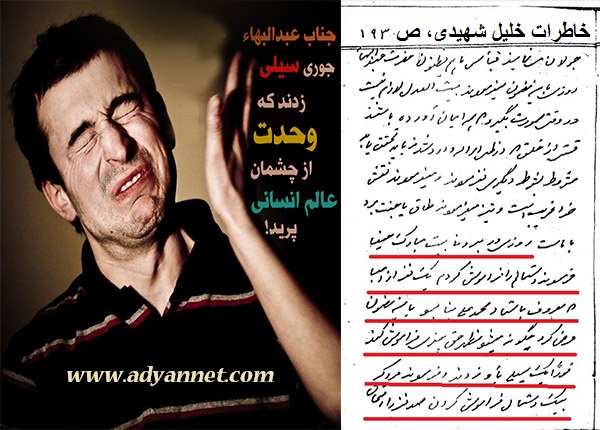 اما به راستی چگونه میتوان تحری حقیقت را ابداع بهائیت نامید [2] و در عین حال، حقیقتطلبی بهائیان را با سیلی و اهانت پاسخ داد؟! از طرفی، مگر در بهائیت از هرگونه نزاع (حتی با شیطان) منع نشده [3] و عبدالبهاء نگفته است: «نوع انسان جمیعاً در ظلّ رحمت پروردگار است نهایت بعضی ناقص هستند باید اکمال گردند، جاهل هستند باید تعلیم یابند، مریض هستند باید معالجه شوند، خوابند باید بیدار گردند...»[4]؛ پس چه توجیهی برای رفتار زنندهی او وجود دارد؟!