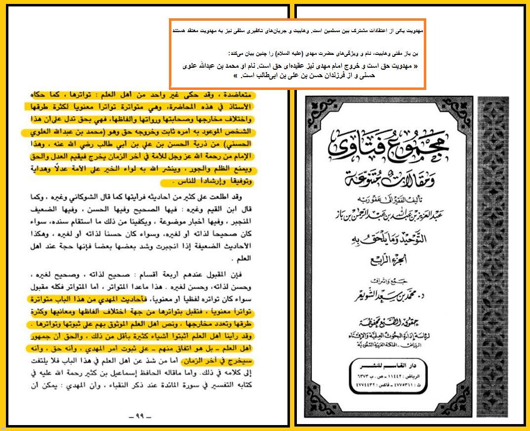 بن باز مفتی وهابیت، نام و ویژگیهای حضرت مهدی (علیه السلام) را چنین بیان میکند: