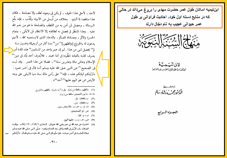 منهاج السنة النبویة، ابنتیمیه حرّانی، مؤسسة قرطبة، مصر، ج 4، ص 91