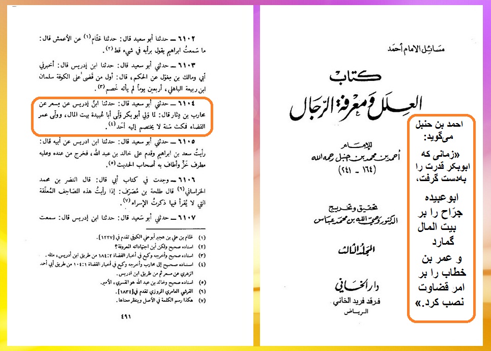 العلل و معرفه الرجال، احمد بن حنبل، المکتب الاسلامی، بیروت، لبنان، ج3 ص491 حدیث6104.