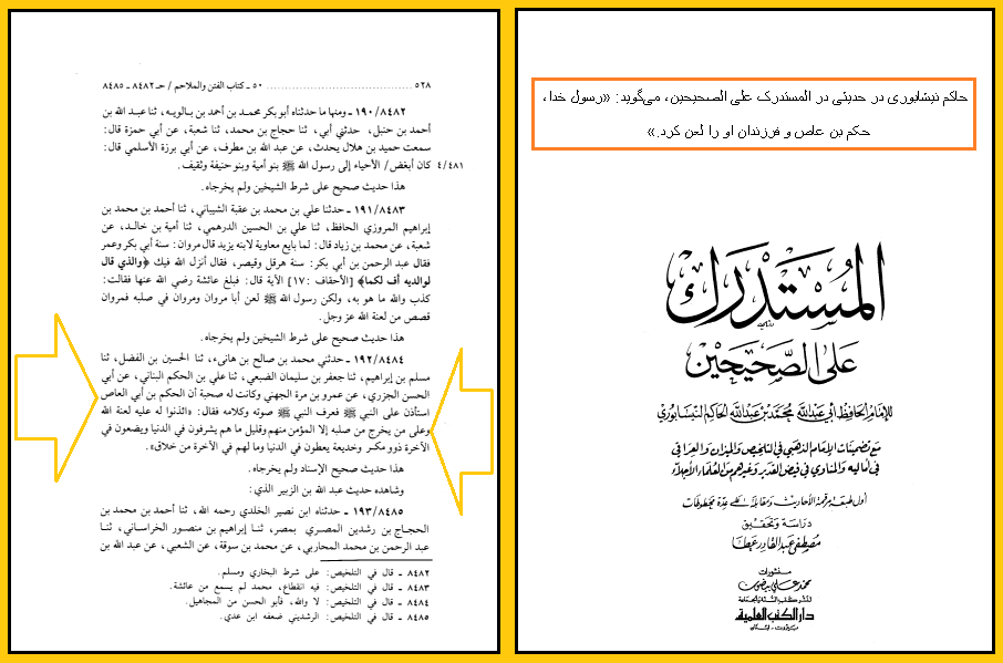 (نیشابوری، محمد بن عبد الله، المستدرک علی الصحیحین، ج 4، ص 528، بیروت، دار الکتب العلمیة، چاپ اول، 1411 ق)