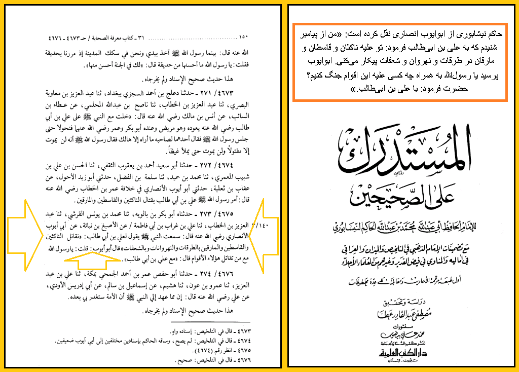 (المستدرک علی الصحیحین، حاکم نیشابوری، دارالکتب العلمیة، بیروت: ج3، ص150، ح4675)