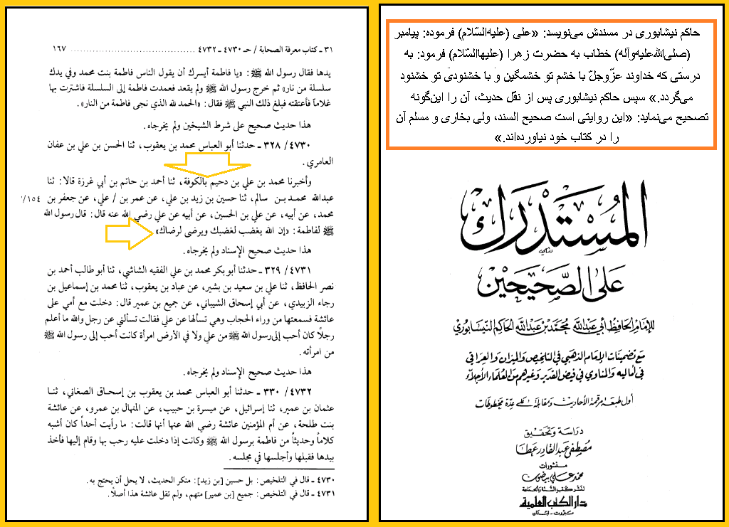 (المستدرک علی الصحیحین، حاکم نیشابوری، دار الکتب العلمیة، بیروت، ج3، ص167، ح4730)