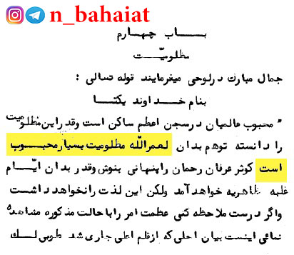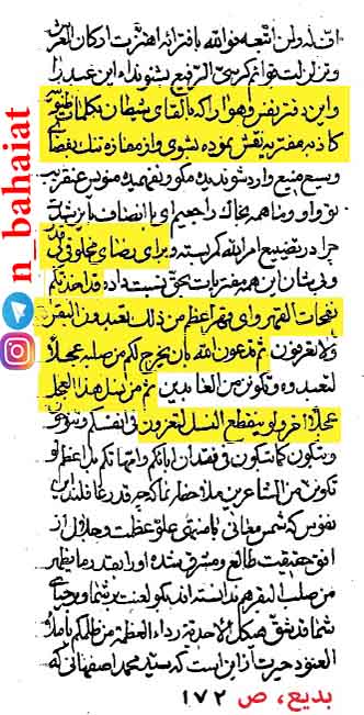 [4]. ر.ک: حسینعلی نوری، بدیع، نسخهی خطی، ص 172؛ عباس افندی، مکاتیب، مطبعه العلمیه المصر: به همّت فرجالله زکی الکردی، 1330 ق، ج 1، ص 443-442 و 271.