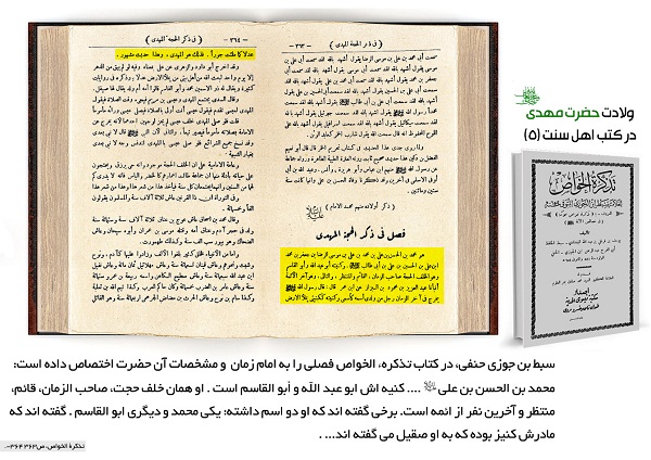 [6]. «خلفاء امتی اثنی عشر خلیفه اولهم علی و آخرهم القائم مهدی.» ینابیع الموده، قندوزی، انتشارات رضی، قم، ایران، ج2 ص533- 534. جهت مشاهده تصویر کتاب کلیک کنید.