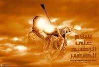 یعقوبی میگوید: امام (علیه السلام) بر اسب خود سوار و عازم میدان بود، کودکی که در همان ساعت متولد شده بود نزد آن حضرت آوردند. امام (علیه السلام) در گوش فرزند خود اذان گفت و کام او را برداشت. در آن هنگام تیری به حلق آن طفل اصابت کرد و او را به شهادت رسانید. امام آن تیر را از حلق طفل بیرون کشید و کودک را به خونش آغشته ساخت و گفت: «به خدا سوگند، تو گرامیتر از ناقه (ناقه صالح)در پیشگاه خدای تعالی هستی و جد تو رسول خدا، نزد خداوند گرامیتر از صالح پیامبر است» آنگاه بدن خون آلود کودک را نزد سایر فرزندان و برادر زادگان خود نهاد.(4)