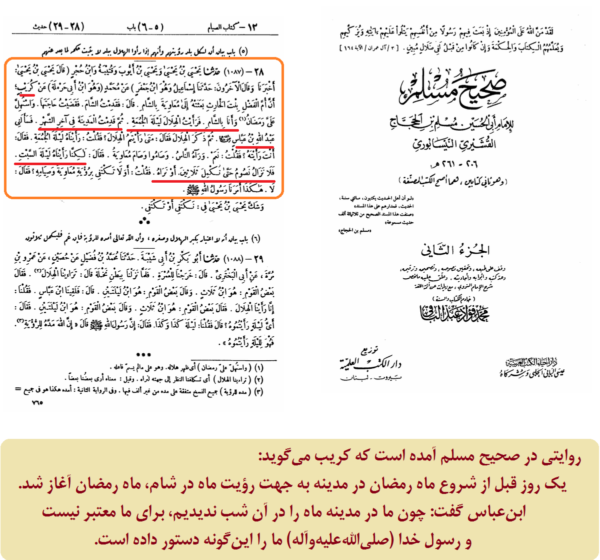 روایت صحیح مسلم، در مورد لزوم رؤیت هلال در هر مکان