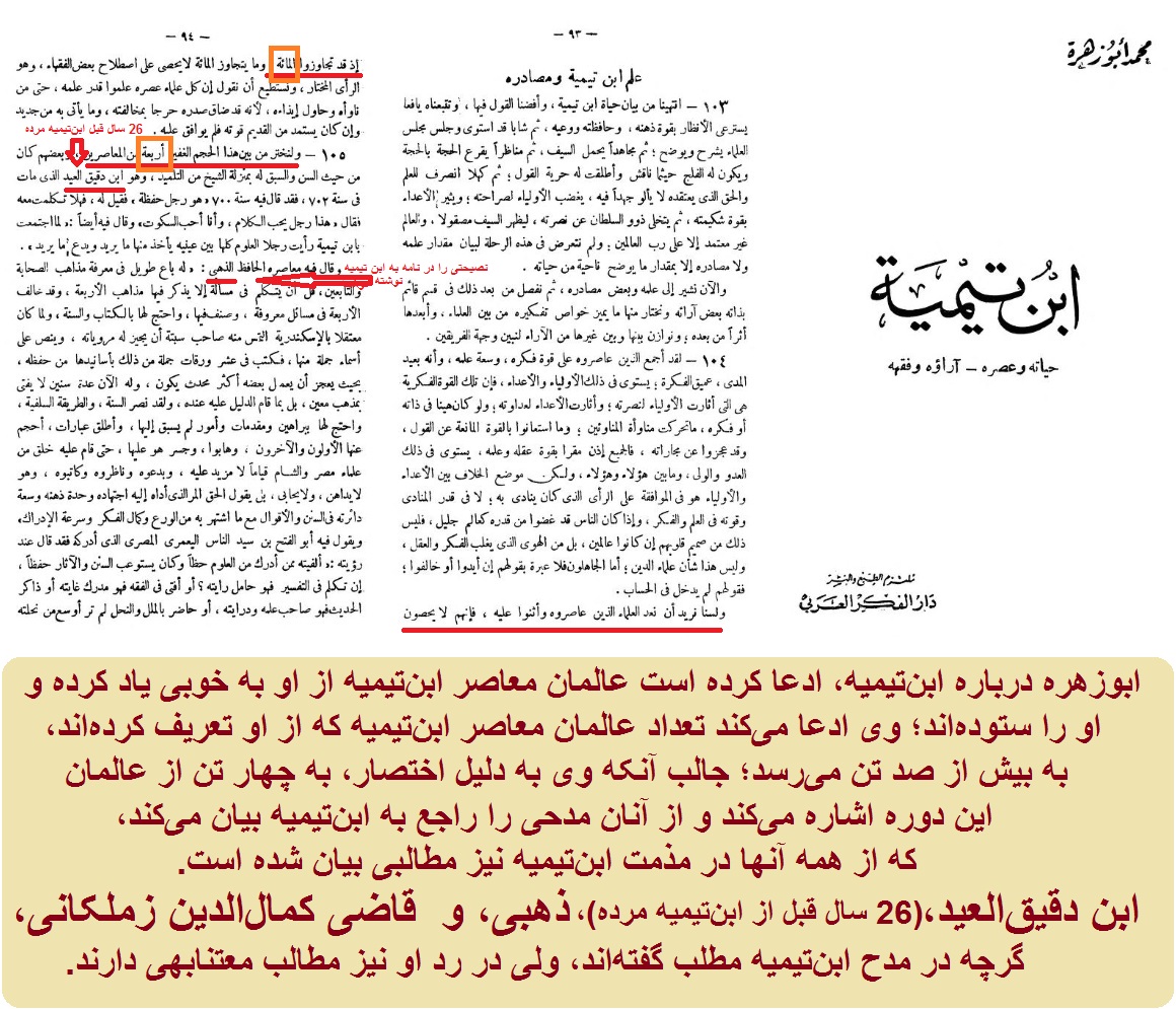 ابوزهره، ابن تیمیه حیاته و عصره ـ آرائه و فقهه، ص94-95.