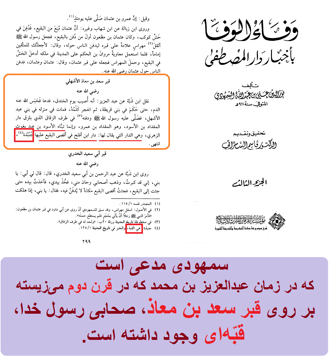 وفاء الوفاء، سمهودی، دار الکتب العلمیه، بیروت، لبنان، ج3، ص299.