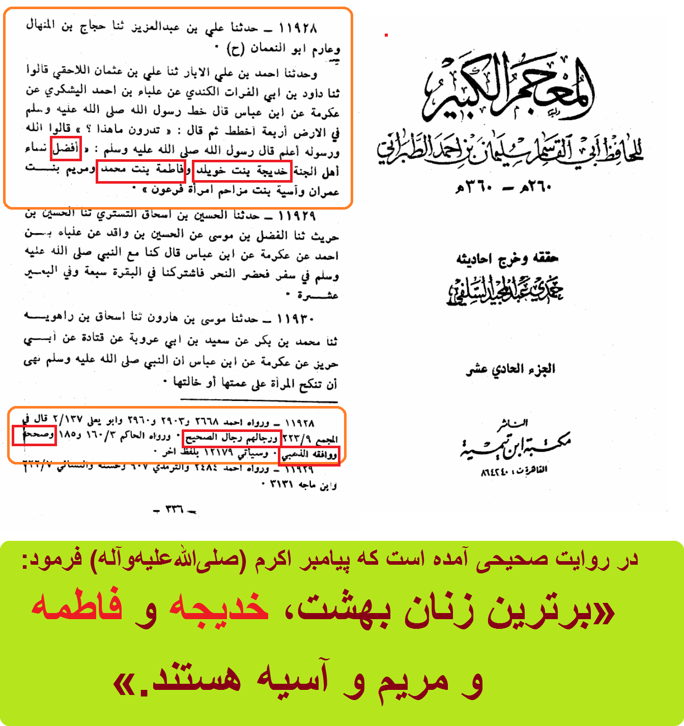 المعجم الكبير، طبرانی، ج11، ص336.