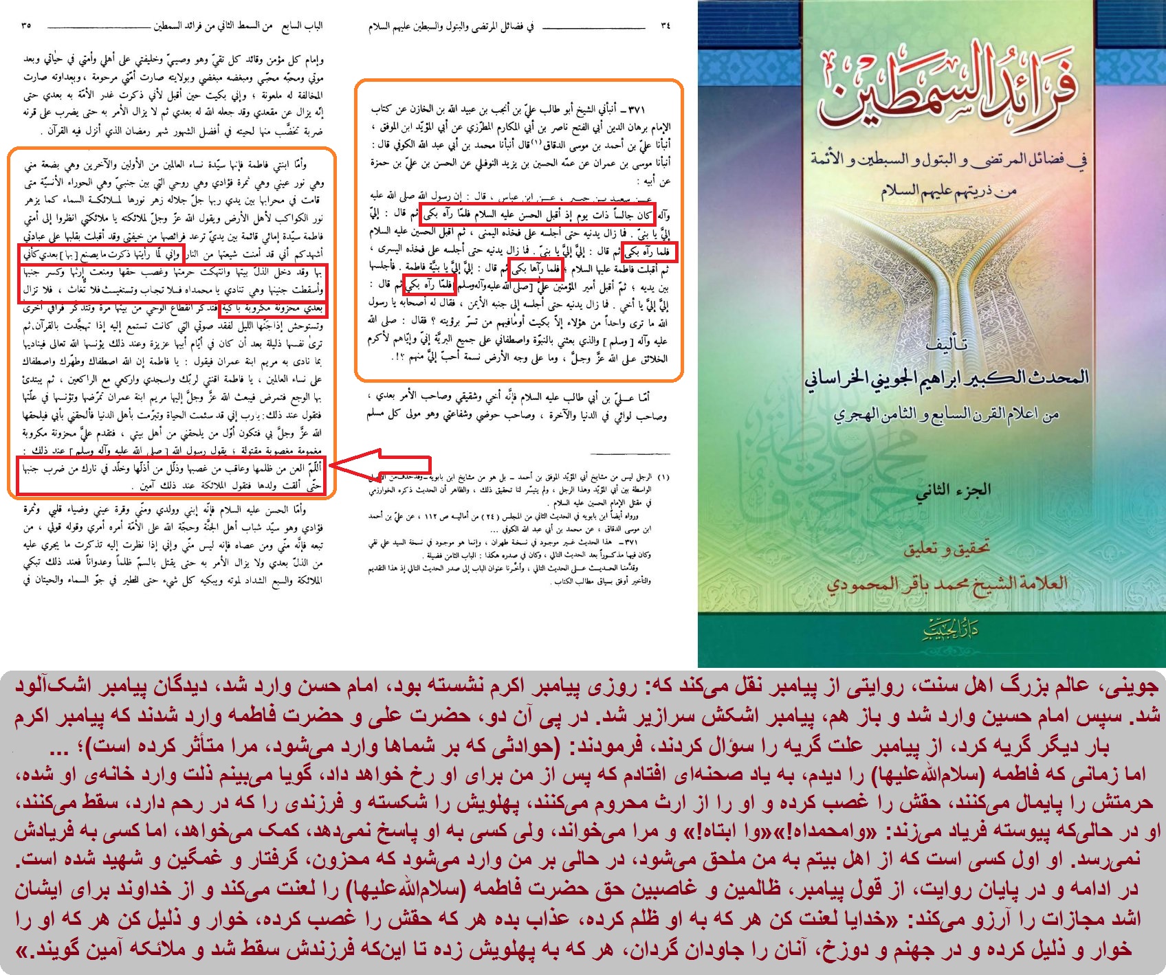 فرائد السمطین، جوینی، طبع موسسه محمودی، بیروت، لبنان، ج2 ص34 و 35.