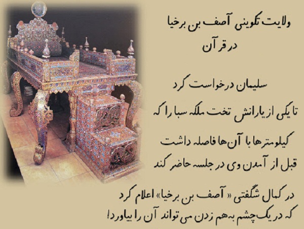 از جمله شواهد قرآنی، داستان آصف بن برخیا، وصی سلیمان نبیّ است که تخت بلقیس را از سرزمین یمن تا بیتالمقدس، در یک چشم به هم زدن حاضر کرد و در عین حال این کار را به شخص خود انتساب داد. خداوند اینچنین میفرماید: «قَالَ الَّذِي عِنْدَهُ عِلْمٌ مِنَ الْكِتَابِ أَنَا آتِيكَ بِهِ قَبْلَ أَنْ يَرْتَدَّ إِلَيْكَ طَرْفُكَ.[نمل/40] کسیکه نزد او علم و دانشی از کتاب -الهی- بود گفت: من آن را پیش از آنکه چشم خود را بر هم بزنی، برایت میآورم.» حال سؤالی که باید از وهابیت پرسید این است که آیا این آیه، صراحت در انجام عملی خارق العاده توسط مخلوق بوده و با کلمه -انا- به خود نسبت داده است کفایت برای فاعلیت شخص نیست؟ و این سخن عالم اهل سنت بعد از نقل جریان تخت بلقیس و ... که میگوید: «... أکفر نبیّ الله سلیمان بذلک الطلب و أشرک ولیّ الله بهذا الجواب حاشاهما من ذلک[2] آیا سلیمان نبیّ به خاطر این طلب کافر شده و وزیرش به خاطر آن جواب مشرک گردیده؟ اصلاً و ابداً که چنین باشد!»