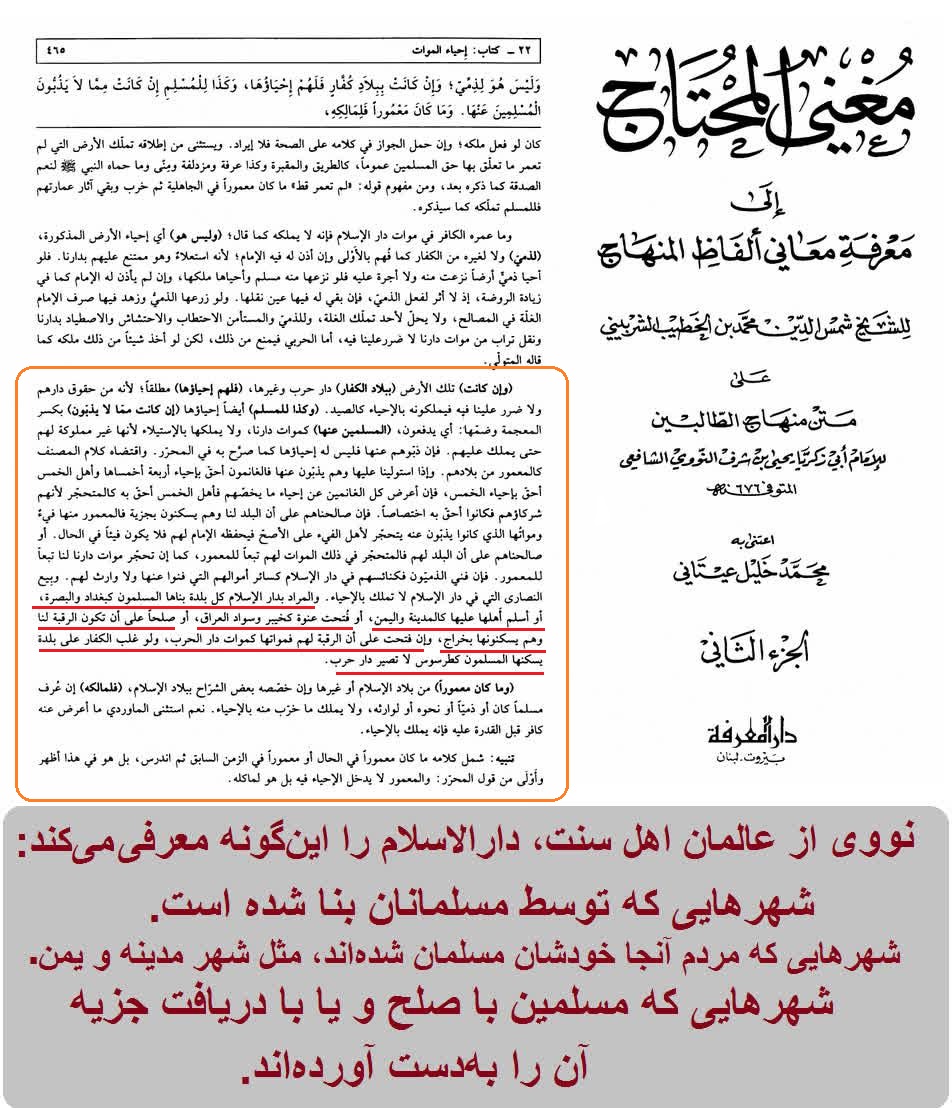 شربینی از عالمان اهل سنت، دارالاسلام را این‌گونه معرفی می‌کند: