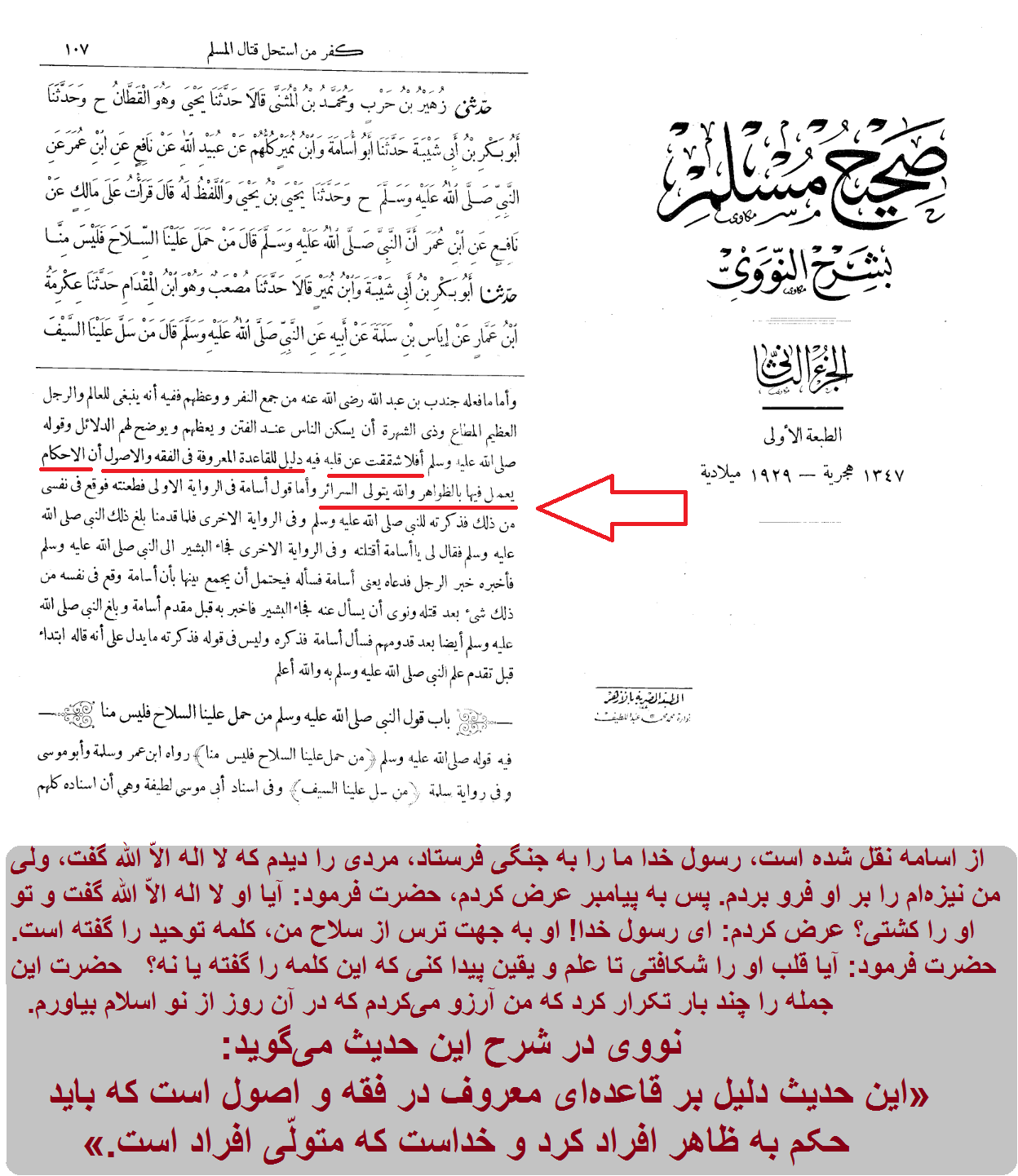 شرح صحیح مسلم، نووی، دار احیاء التراث العربی، بیروت، لبنان، ج2 ص104.