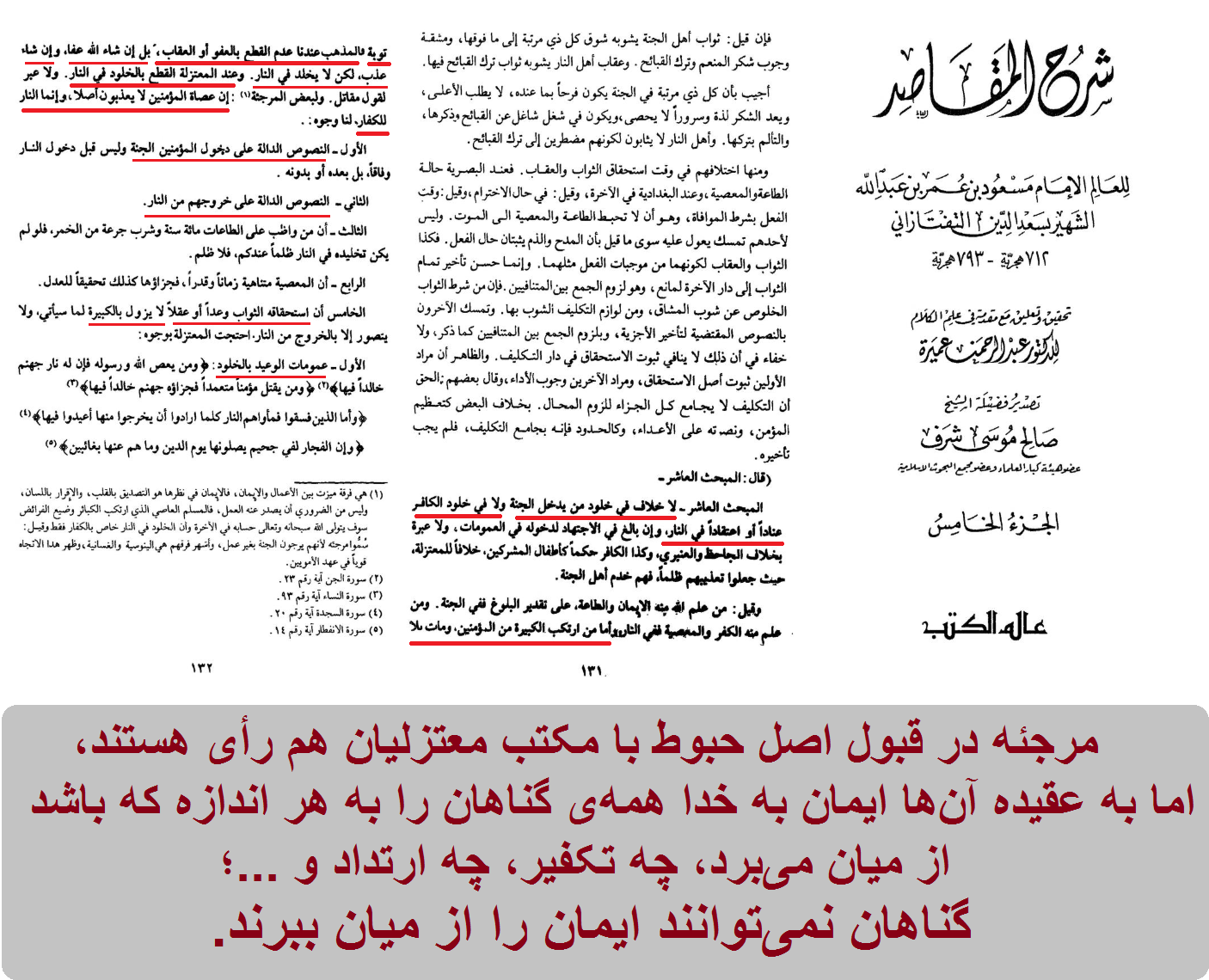 شرح المقاصد، تفتازانی، ج5 ص131و132.