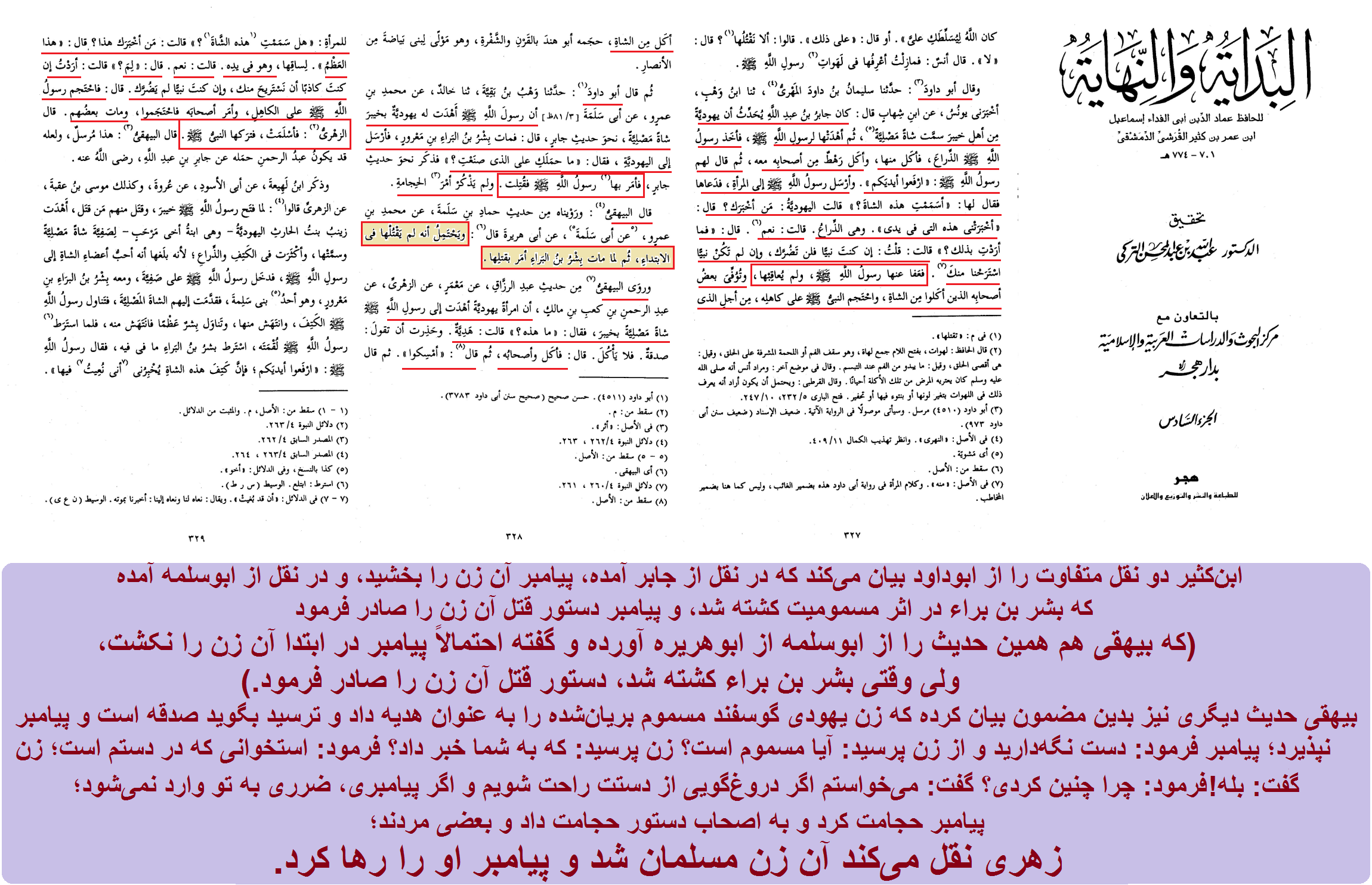 البدایه و النهایه، ابنکثیر، ج6، ص327 - 329.