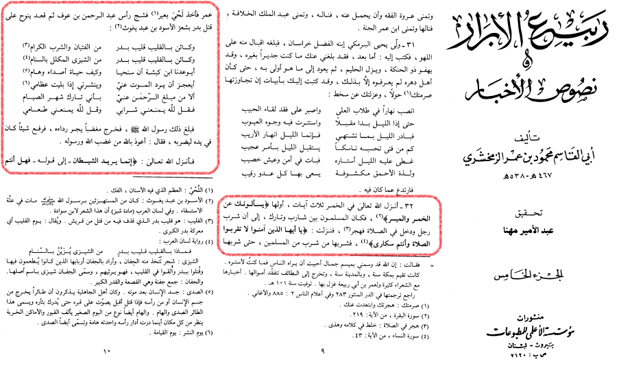 [2]. ربیع الابرار...، زمخشری، موسسه الاعلمی للمطبوعات، بیروت، لبنان، ج5 ص10.