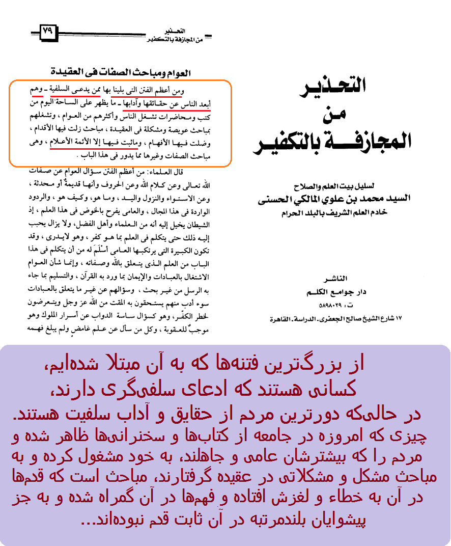 التحذیر من المجازفه بالتکفیر، محمد بن علوی المالکی، ص79.