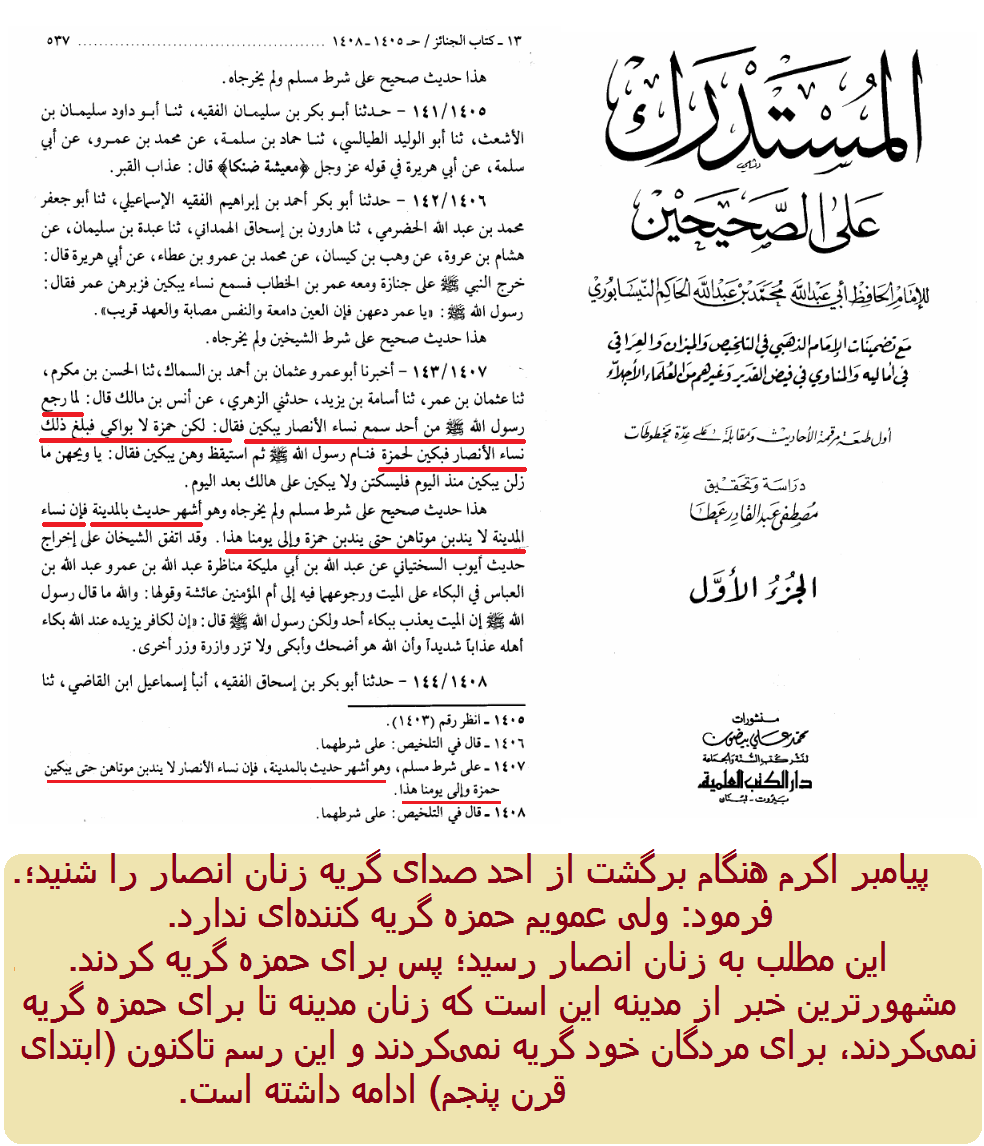 رسم زنان مدینه برای گریه بر حمزه سیدالشهداء قبل از گریه بر مردگانشان