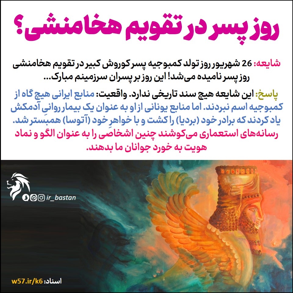 تمام چیزهایی که درباره کمبوجیه پسر کوروش دارید، یا از منابع یونانی هست یا منابع یهودی. یا ترجمه هایی که انگلیسیها و خلاصه اروپایی ها براتون انجام دادند. همین یونانیها رو کنار بگذارید چی از کمبوجیه میمونه؟ در سراسر شاهنامه و روایات تاریخی ایرانی و متون ادبی و تاریخی و... هیچ چیزی از کمبوجیه نیومده. بزرگان ایرانی از اسب رستم و خر اسفندیار، خیلی حرف زدند. در روایات زرتشتی از عموی زرتشت (به اسم آراستی) که یک شخصیت درجه 10 تاریخی هم نبود اسم اومده از جزئی ترین چیزها صحبت شده ولی از کمبوجیه هیچ حرفی زده نشده. بزرگان علم و ادب ایران، کسر شأنشون بوده درباره کمبوجیه حرف بزنند.