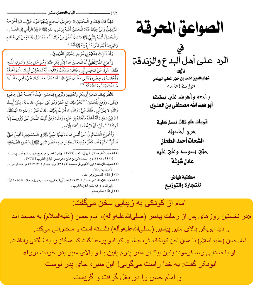 الصواعق المحرقه، ابن حجر هیتمی، ص492.
