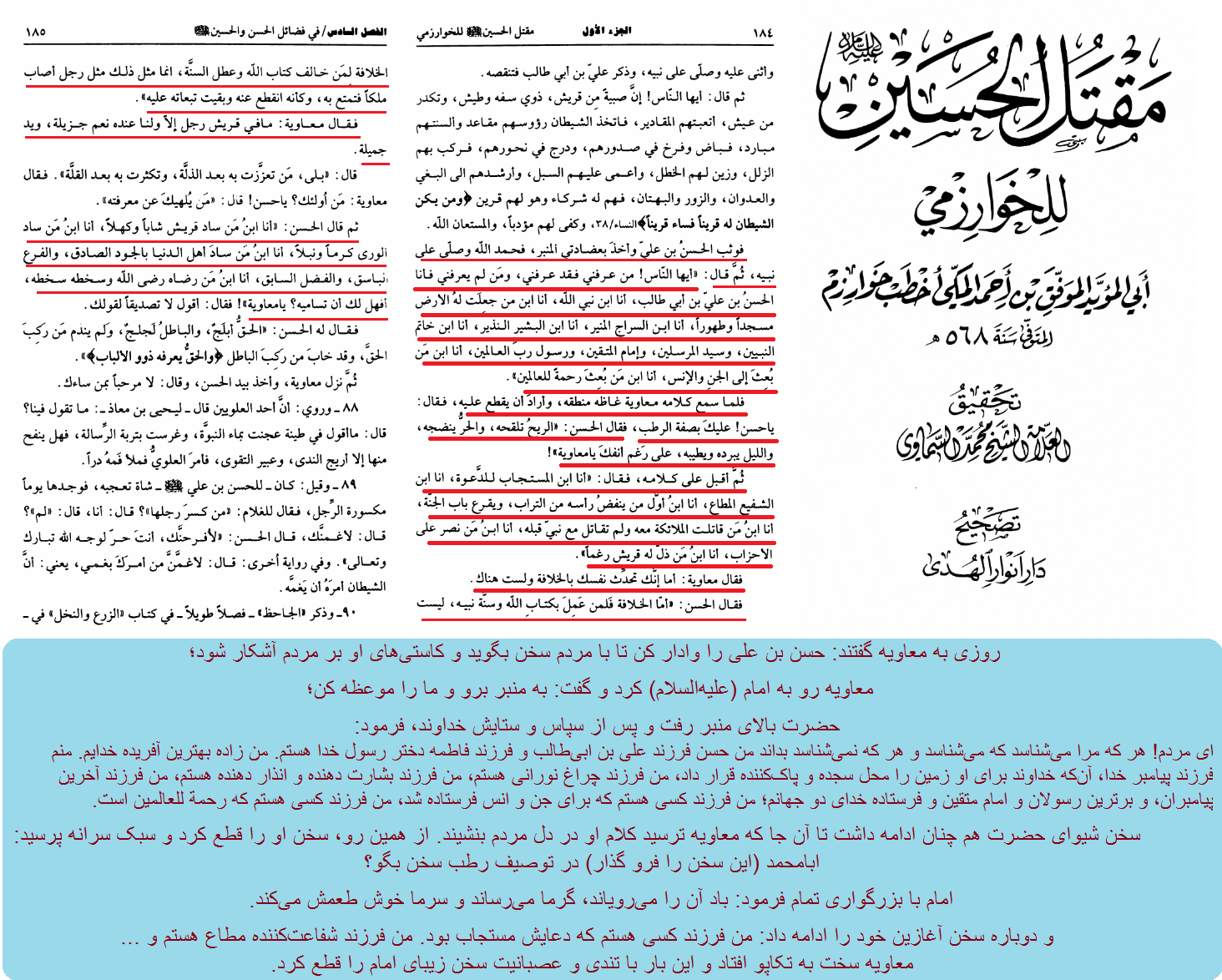 مقتل الحسین، خوارزمی، ج1، ص184و185.