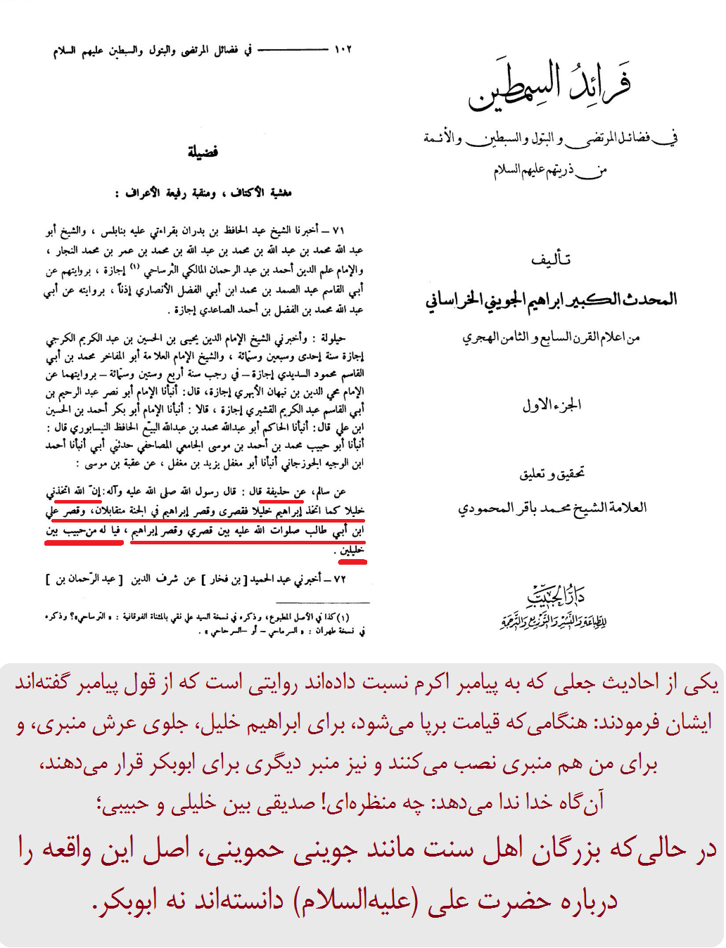 فرائد السمطین، جوینی حموینی، ج1، ص102.
