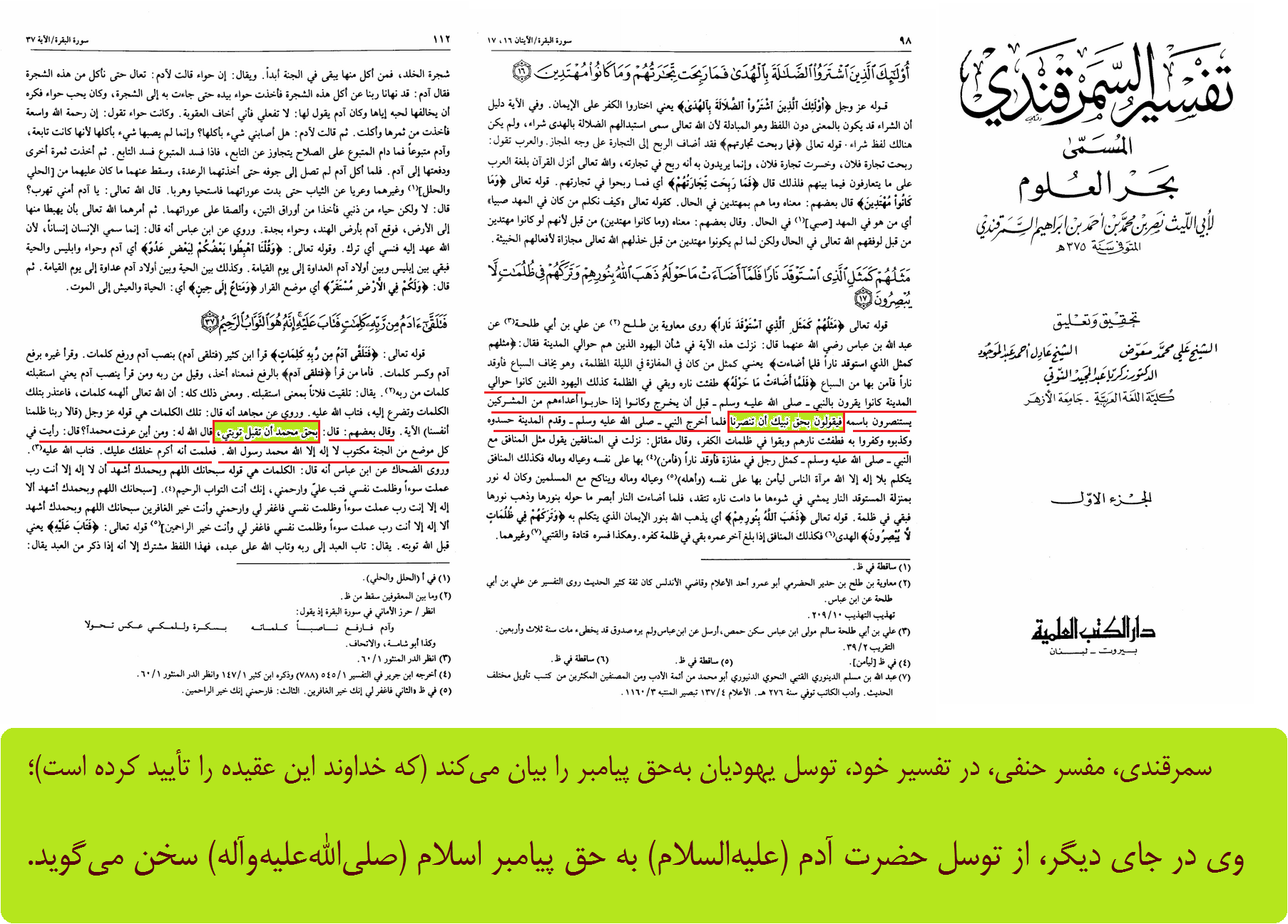 بحر العلوم، سمرقندی، ج1، ص98 و ص112.