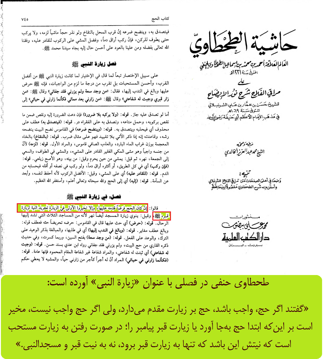سفارش طحطاوی حنفی به زیارت قبر پیامبر