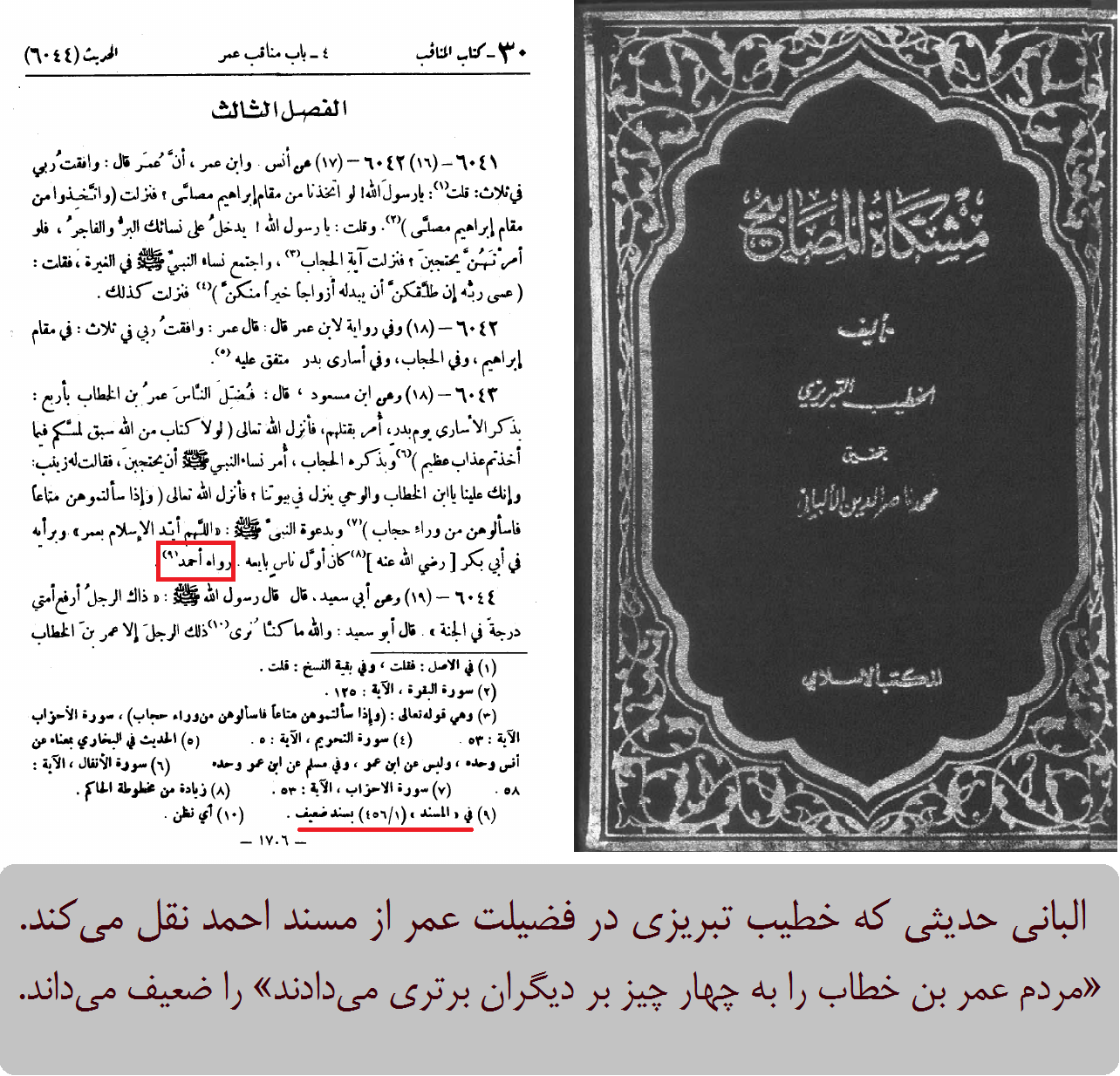 مشکاه المصابیح، خطیب تبریزی، تحقیق البانی، ص1706.