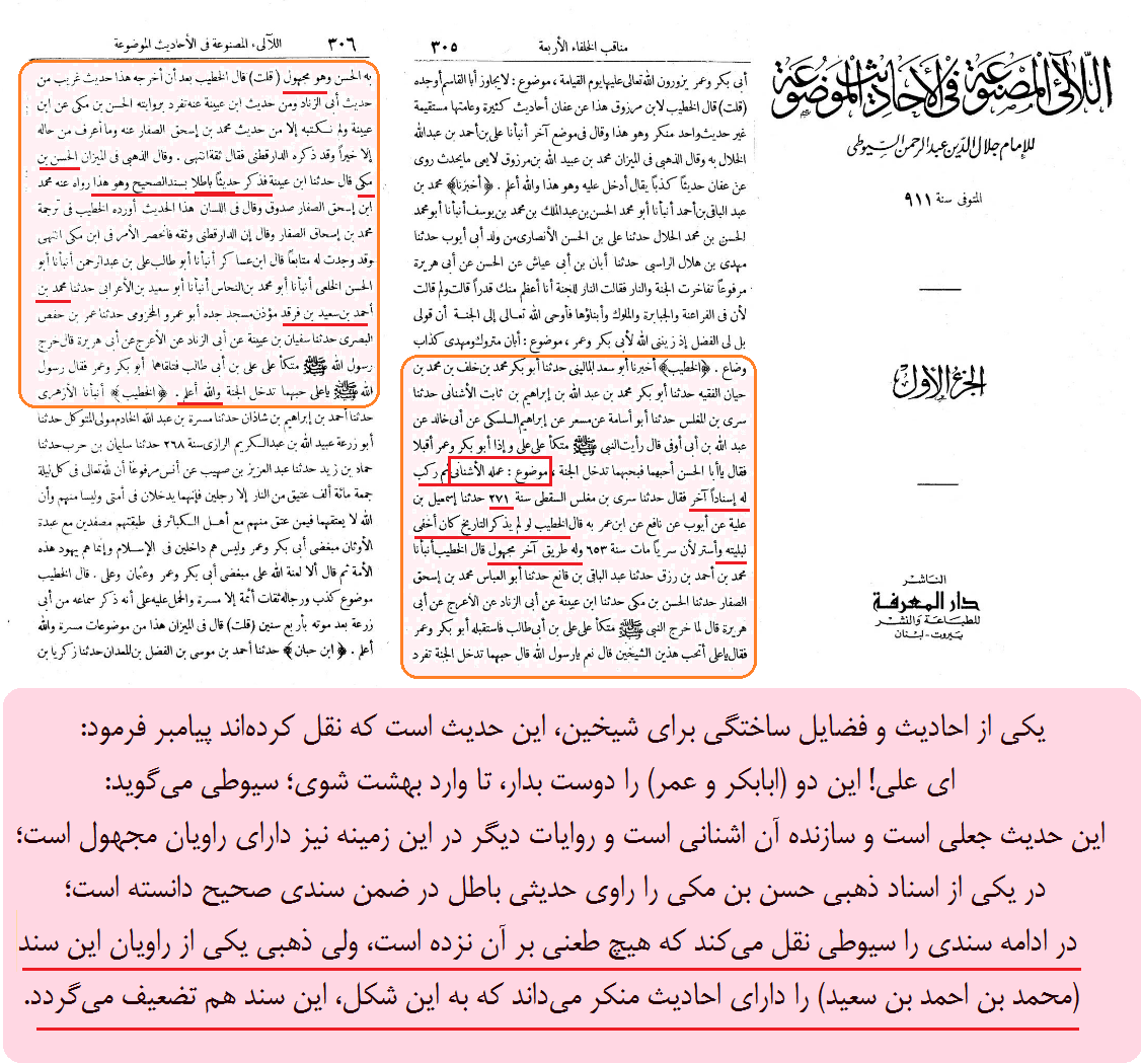اللالی المصنوعه، سیوطی، ج1، ص305و306.