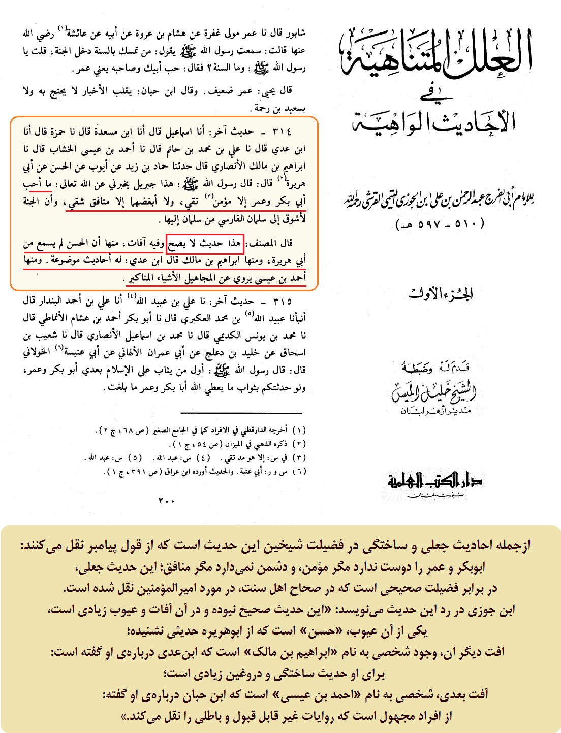 العلل المتناهیه فی الاحادیث الواهیه، ابن جوزی، ج1، ص200.