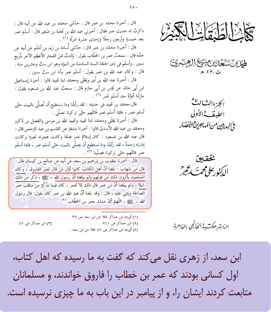 ابن سعد، از زهری نقل می‌کند که گفت به ما رسیده که اهل کتاب، اول کسانی بودند که عمر بن خطاب را فاروق خواندند، و مسلمانان متابعت کردند ایشان را، و از پیامبر در این باب به ما چیزی نرسیده است.