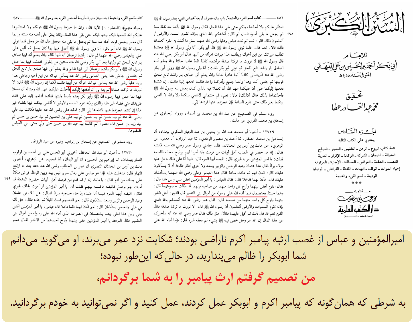 قسمتی از ارث غصب شده پیامبر، توسط عمر به عباس و امیرالمؤمنین برگشت