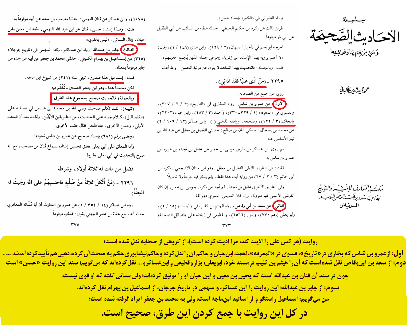 السلسلة الصحیحة، البانی، ج۵، ص۳۷۳-۳۷۴.