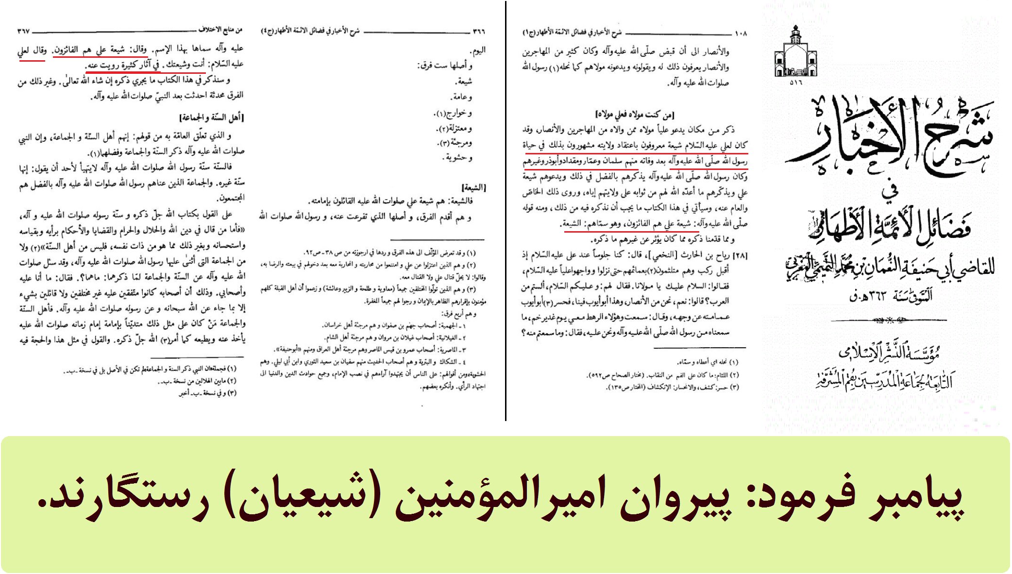 شرح الاخبار، قاضی نعمان مغربی، ج1، ص108 و ص367.