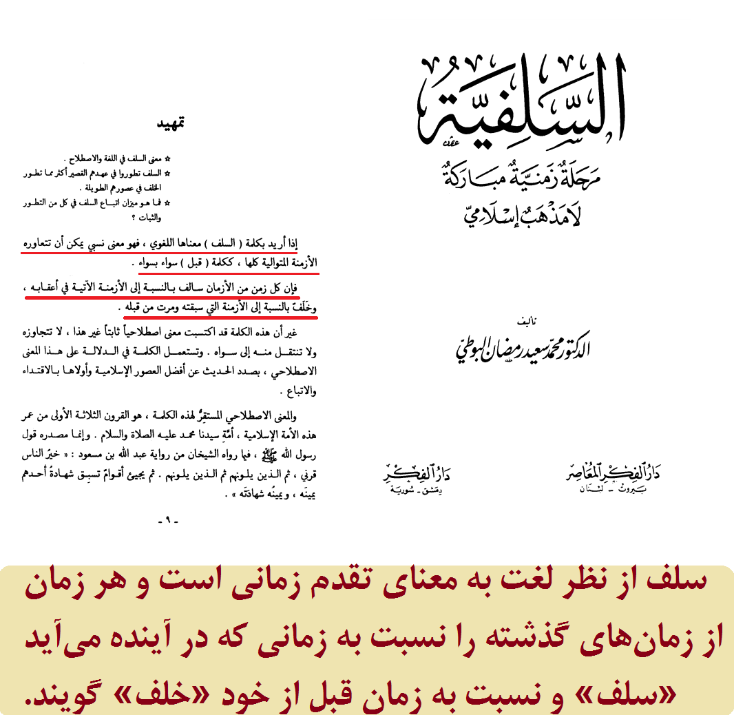 السلفیه مرحله زمنیه مبارکه لامذهب الاسلامی، رمضان البوطی، ص9.