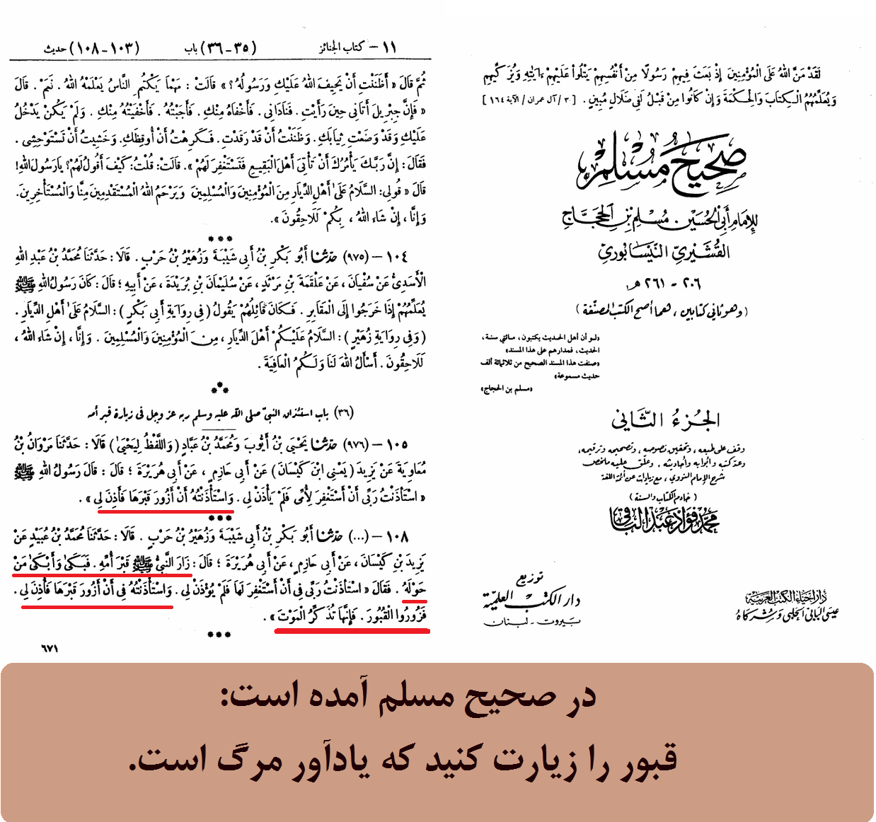 در صحیح مسلم آمده است: قبور را زیارت کنید که یادآور مرگ است.