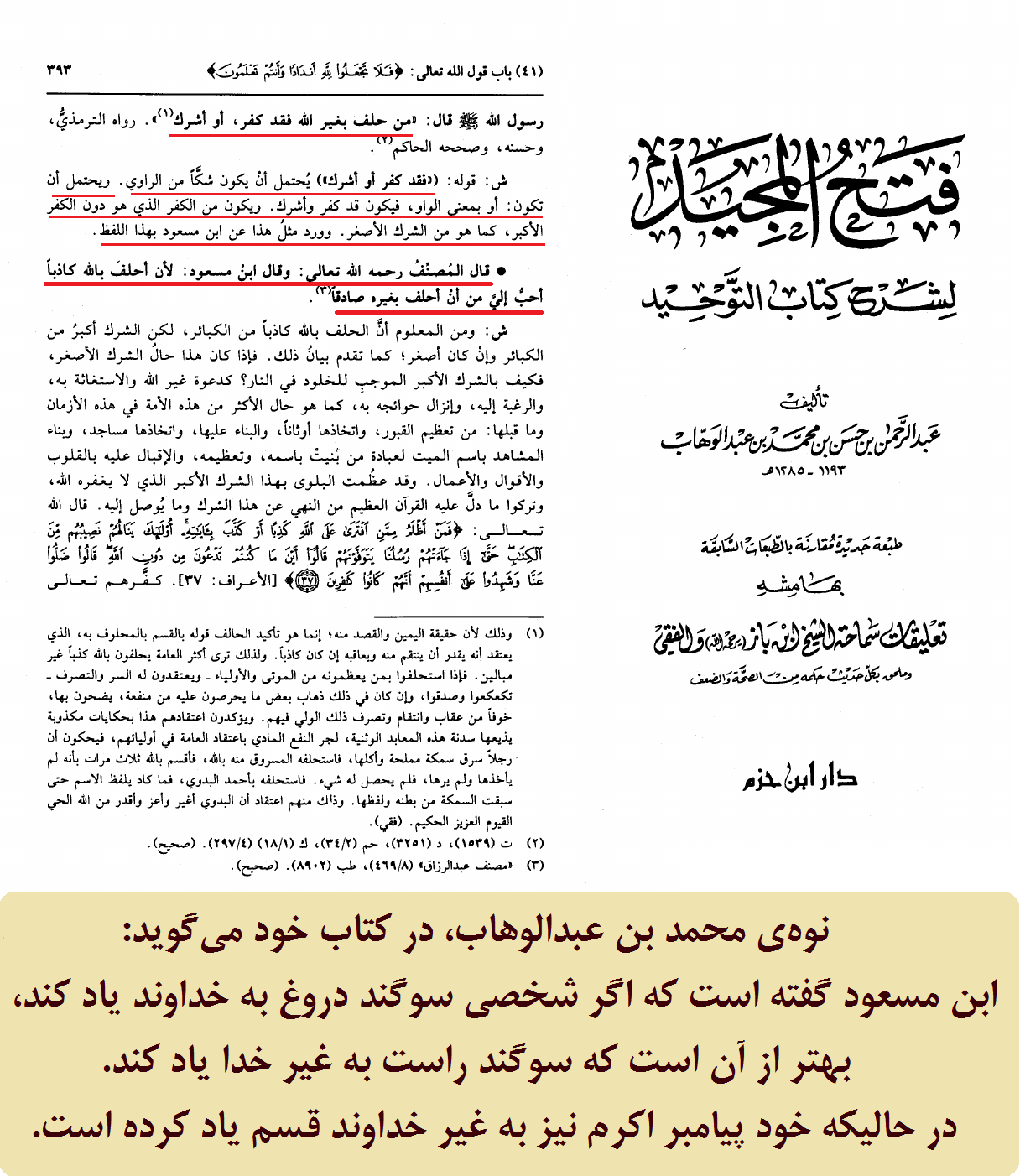 فتح المجید فی شرح کتاب التوحید، عبدالرحمن بن حسن بن محمد بن عبدالوهاب (آل‌شیخ)، ص393.