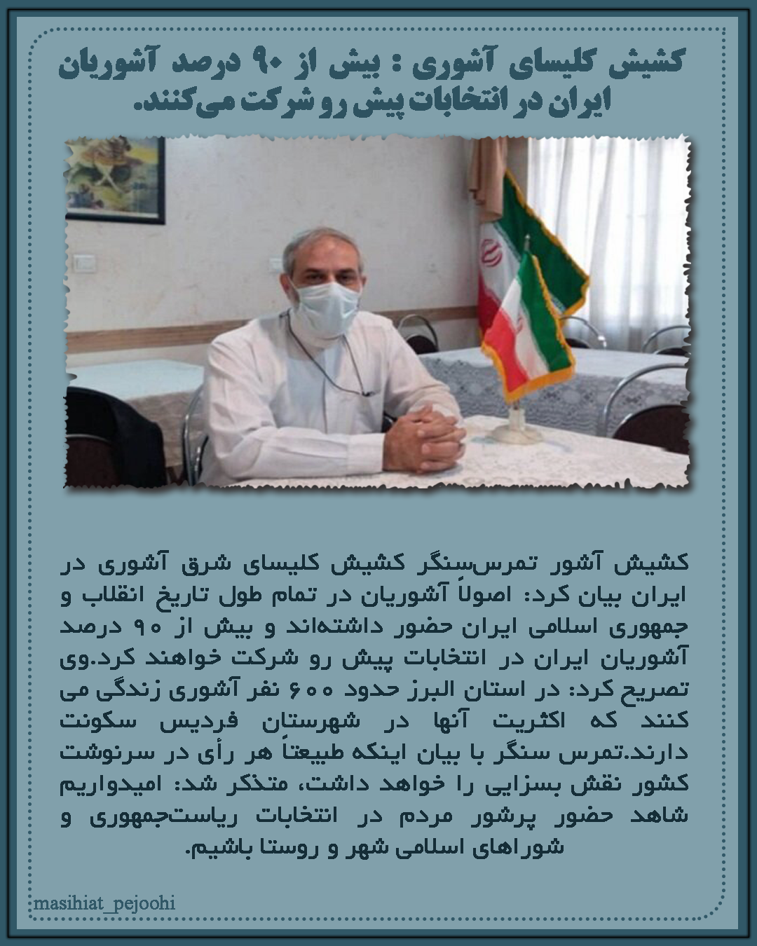 » کشیش کلیسای آشوری : بیش از 90 درصد آشوریان ایران در انتخابات پیش رو شرکت میکنند.