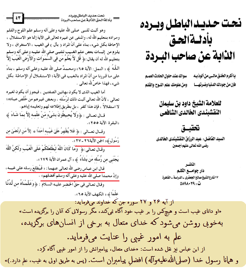 نحت حدید الباطل و برده بادله الحق الذابه عن صاحب البرده، داود بن سلیمان نقشبندی، ص43.