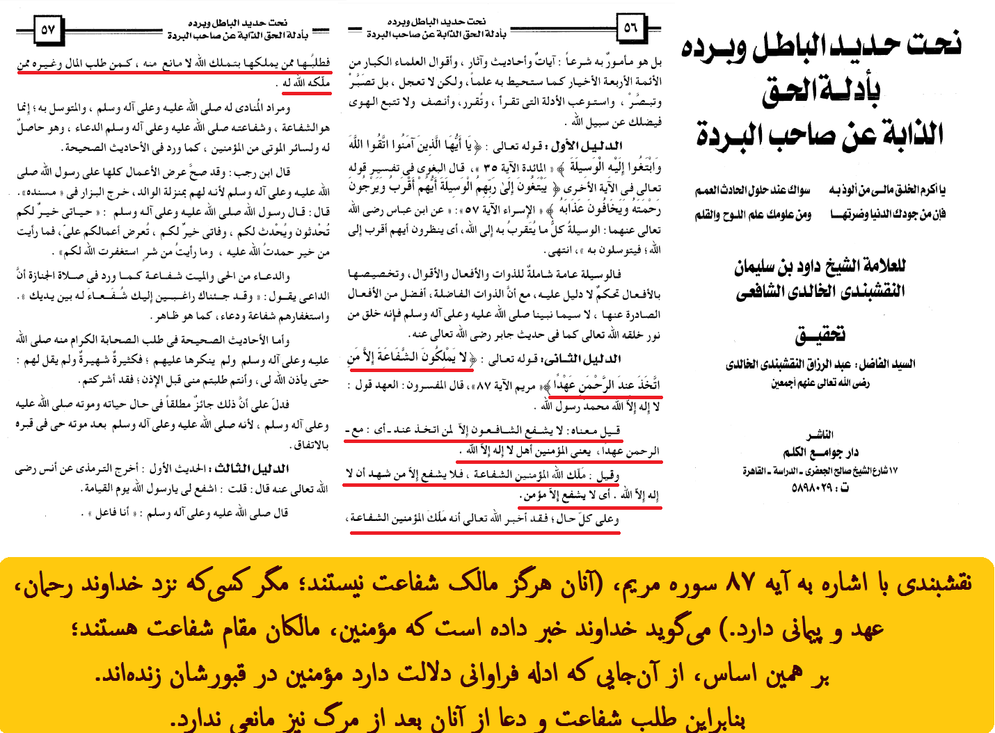 نحت حدید الباطل و برده بادله الحق الذابه عن اصحاب البرده، داود بن سلیمان نقشبندی، ص56 و 57.