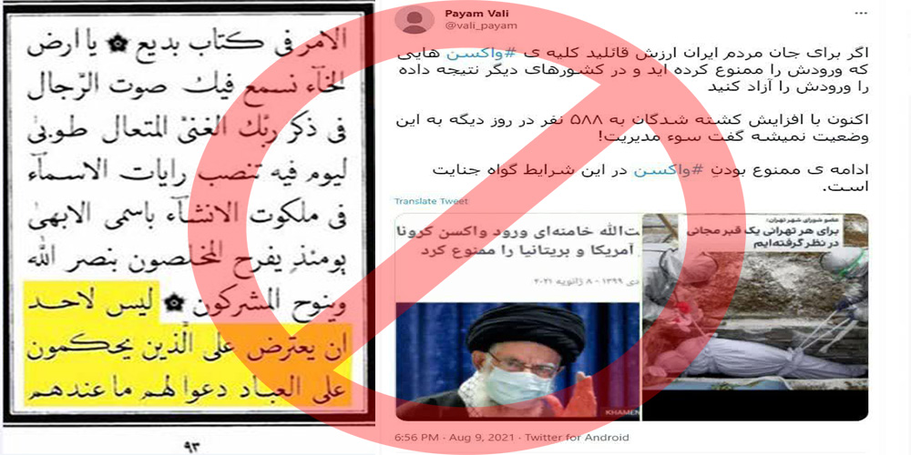 دوم: حتی بر فرض کوتاهیِ مقامات جمهوری اسلامی ایران در واردات واکسن، بهائیان چگونه میتوانند خود را بهائی پندارند در حالی که پیشوای بهائیت پیروانش را از هرگونه انتقاد و اعتراض به حاکمین بر حذر داشته است: «لَیسَ لِأحَدٍ أن یَتَعَرَّضَ عَلی الَّذین یَحکُمون عَلی العِباد دَعُوا عِندَهُم و تَوَجَّهوا إلی القُلوب.[3] بر هیچ کس (هیچ بهائی) جایز نیست به حاکمان بر مردم اعتراض نماید؛ امور را به حاکمین واگذارید و به قلبها توجه کنید».