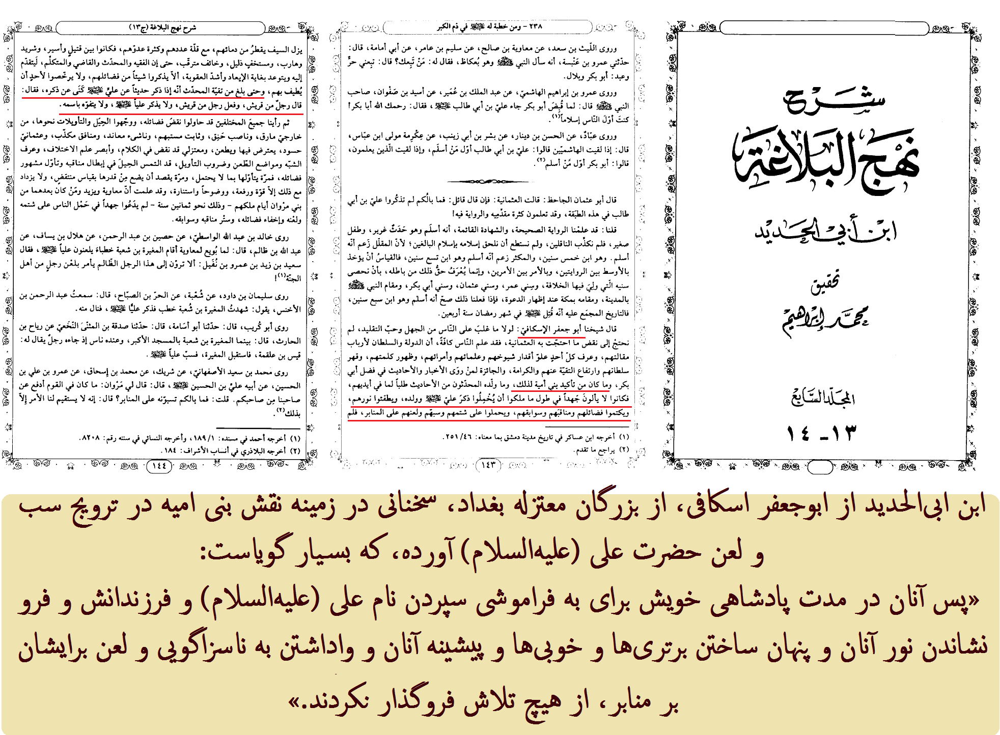 گزارش اسکافی از تلاش بنی امیه در ترویج سب و لعن امیرالمؤمنین